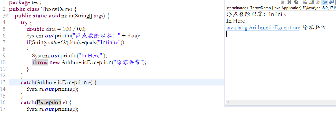 12             throw new ArithmeticException(); //扔出新的错误