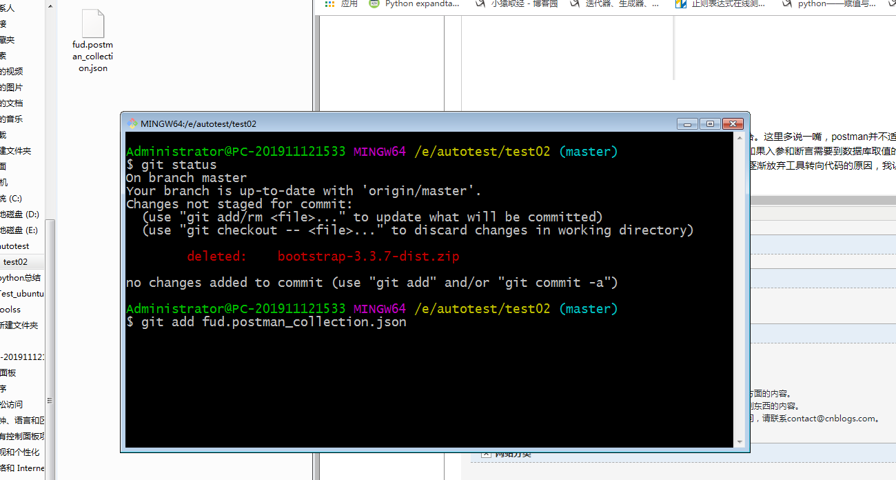 4 postman写成的脚本导出到本地git仓库中,当然还有你的环境集合。这里多说一嘴,postman并不适合做多接口串行,当然不是不能做,例如可以使用 pm.globals.set(变量名, 变量值) 设置到环境变量中 然后在其他脚本中进行引用就行了,但是如果入参和断言需要到数据库取值的情况postman就不大灵活了,当然postman也有对应的插件可以支持简单的数据库增删改查。总之工具是没有代码来的方便的,这也是我工作中逐渐放弃工具转向代码的原因,我认为python是对测试比较友好的,语法简单,资源丰富。有兴趣的不妨去学习下。