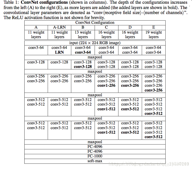 VGG共有6种结构,常用的是D和E,即VGG16和VGG19