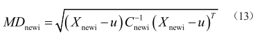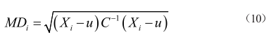 第i个向量X i =[Xi1, Xi2, Xi3,…, X im ], m是向量总数。u=[u 1 ,u 2 ,u 3 ,…,u m ]是均值向量。马氏距离对于训练数据集的计算如下: