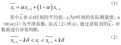 式中: k通过统计小概率事件确定, 通过设置k和α对数据进行异常判断, 当x t 满足公式(2) 时, 可以判断当前数据为正常值, 否则为异常进行滤除。 选取k=3和α=0.3对功率数据进行处理, 滤除结果如图2所示。
