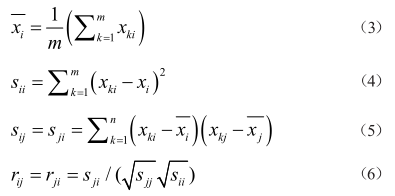 第二步: 故障预警部件参数设为x n 计算所有参数的平均值ix 、 离均差平方和s ii 、 协方差矩阵S=(s ij ) n×n' 和相关系数矩阵R=(r ij ) n×n' 。