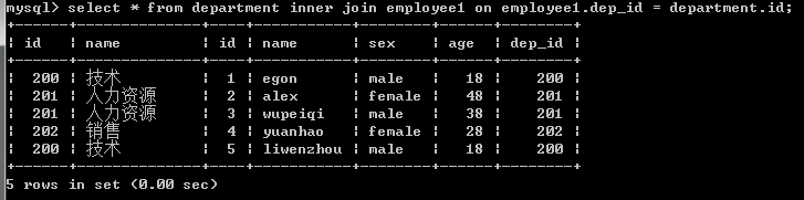 select * from employee1 inner join department on employee1.dep_id=department.id;