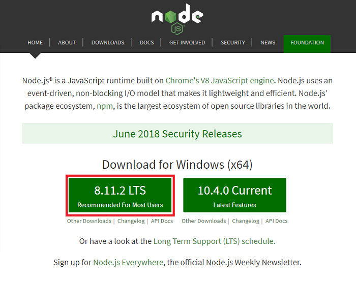根据官方步骤,我们要先安装node.js 。node.js官方网站:https://nodejs.org/