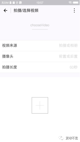 小程序演示中除了提供组件之外也展示了部分接口功能,从中抽取代表性的“选择视频”这一较为复杂用例进行测试:(接口类型:媒体--视频)