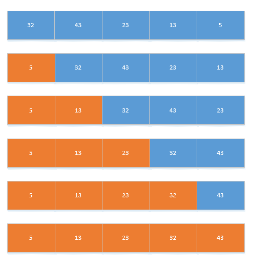 (如果每次比较都交换,那么就是交换排序;如果每次比较完一个循环再交换,就是简单选择排序。)