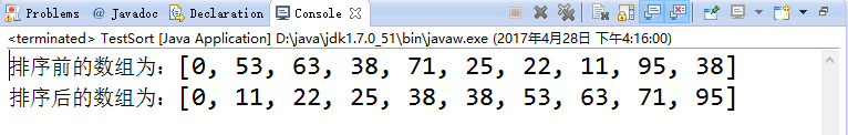 如果要进行比较可已加入时间,输出排序时间,从而比较各个排序算法的优缺点,这里不再做介绍。