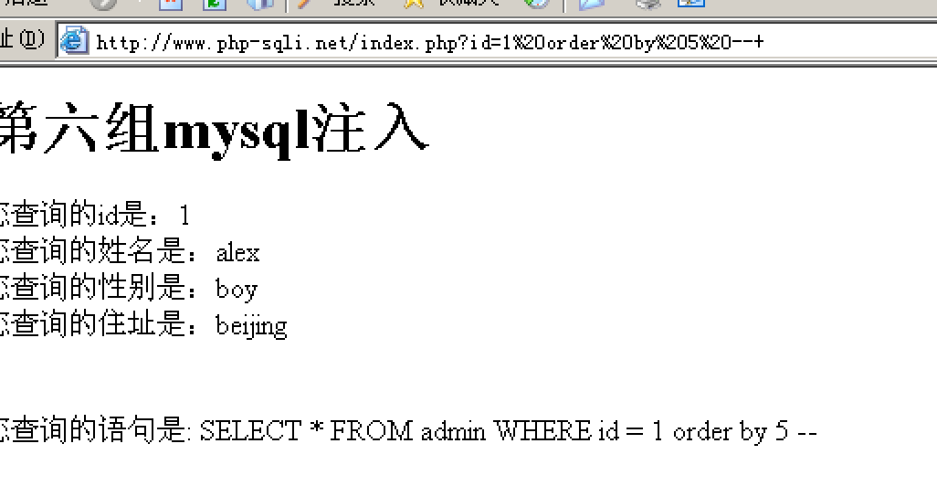 - order by判断有几个字段 ?id=1 order by n %23 可以试出n=5