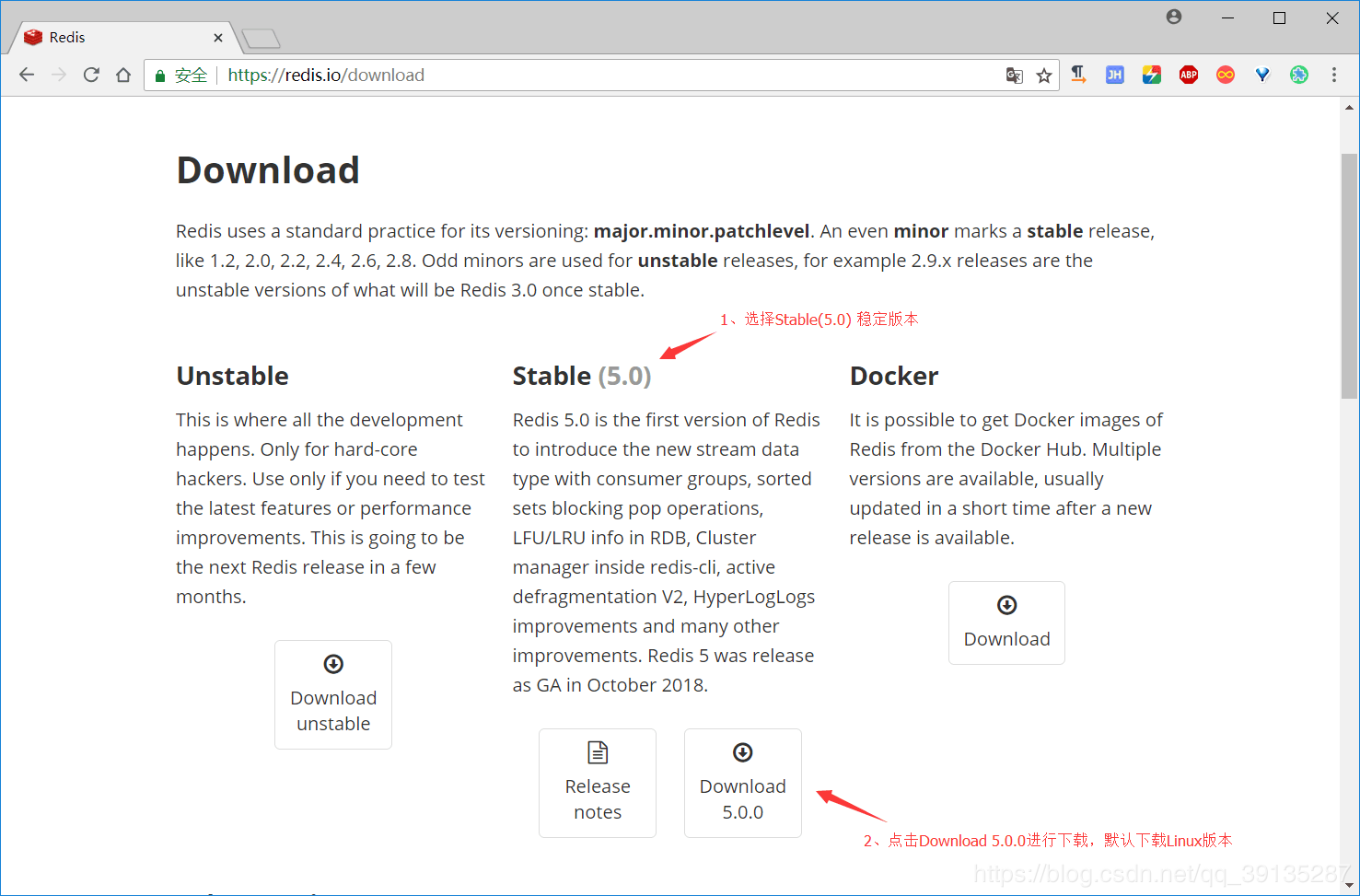 1、选择Stable(5.0)下的Download 5.0.0 链接进行下载 (stable是稳定版本,默认下载的是linux版本)