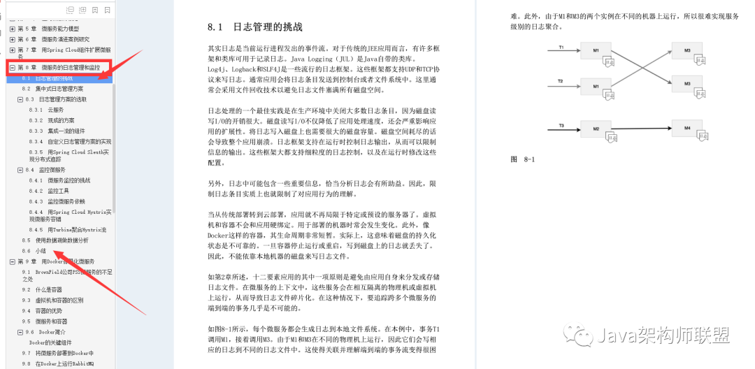 第8章,微服务的日志管理和监控,讨论了日志管理和监控在微服务开发中的重要性,详细阐述了采用微服务架构的一些最佳实践,比如利用开源工具实现集中式的日志管理和监控,以及如何将这些工具和Spring项目集成。