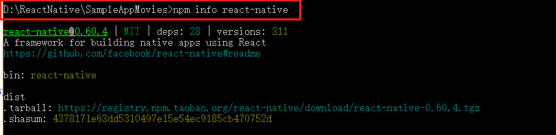确认好后,我们查看react-native现有版本,可以看到现在现在最新的版本也是0.60.4