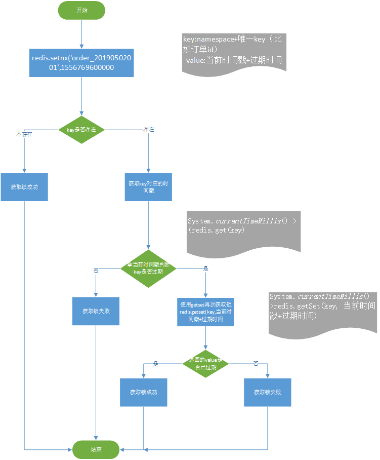 - C2,C3尝试加锁,这时key已存在,所以C2,C3去判断key是否已过期,这里假设key已经过期了,所以C2,C3使用set指令去设置值,那两个都会加锁成功,这就闯大祸了;如果使用getset指令,然后判断下返回值是否过期就可以避免这种问题,假如C2跑的快,那C3判断返回的时间戳已经过期,自然就加锁失败;
