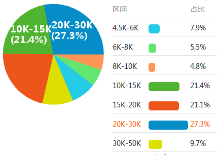 我找了份工资统计数值,目前(2018年5月),1年java开发(初级水平)工资大概是10k,而完成升级后的高级开发,工资在13到15k左右。