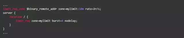 但是请注意:burst的作用是让多余的请求可以先放到队列里,慢慢处理。如果不加nodelay参数,队列里的请求不会立即处理,而是按照rate设置的速度,以毫秒级精确的速度慢慢处理。