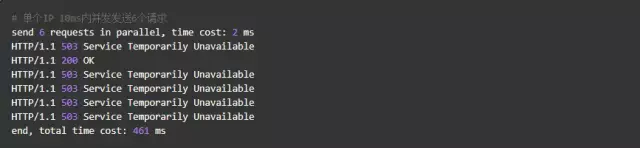 单个IP 10ms内并发发送6个请求,结果如下: