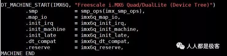 找到平台后就可以根据回调函数的指针调用该平台的注册函数。这里以飞思卡尔 imx.6dl 平台为例,回调的时候会调用 imx6q_init_machine() 函数,如下: