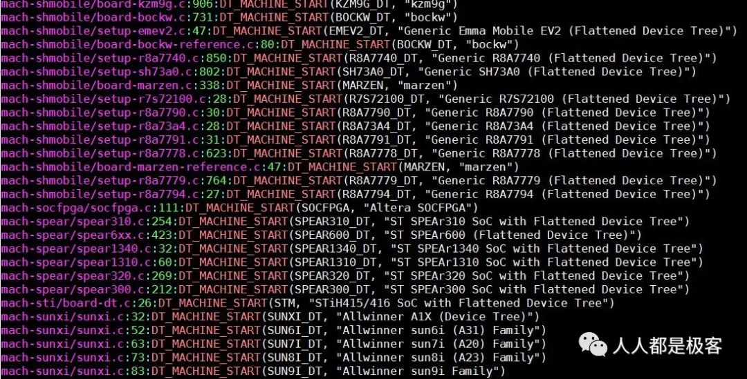 __initconst的描述,如果两个字段一致则找到了对应的板级文件,这样就通过设备树把要用的设备平台与其他平台区分开来了,如图: