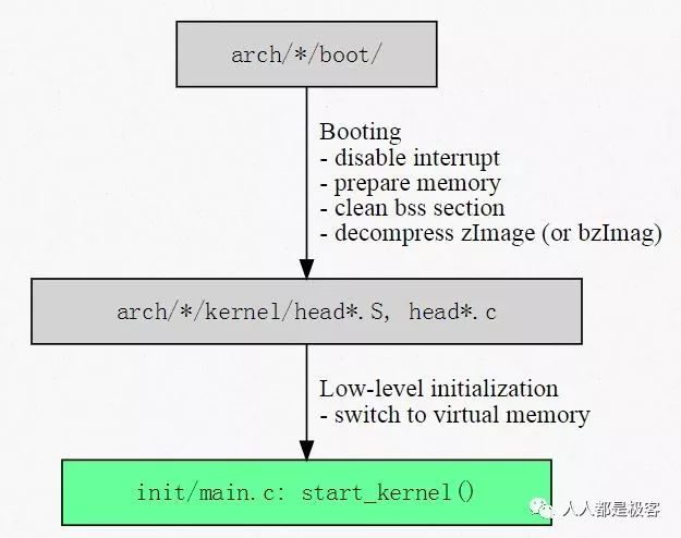 可以说 start_kernel() 之前的所有工作都是为了将环境准备好,满足 start_kernel() 的要求,然后由 start_kernel() 开始进行内核的加载: