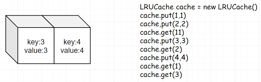 第四步:此时我们put(3,3),因为2是最近最少使用的,所以我们需要将2进行作废。此时我们再get(2),就会返回-1。