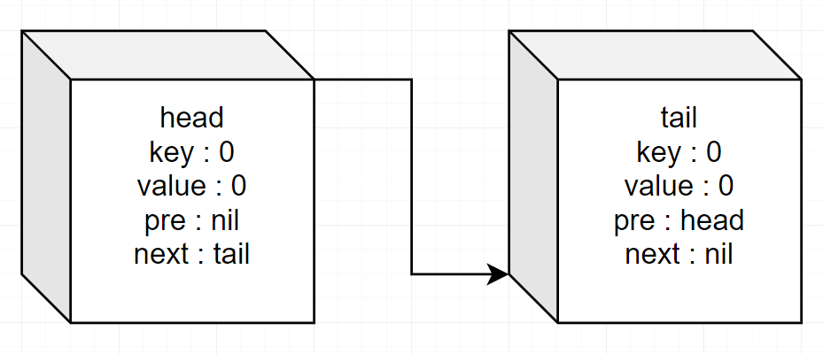 6 return LRUCache{make(map[int]*LinkNode), capacity, head, tail}