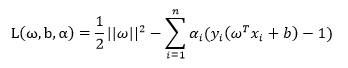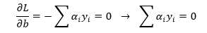 首先固定αi ,让L取得关于w和b的最小值。分别对w和b求偏导数(这可能就是进行拉格朗日对偶化的原因吧),并令导数为0可得: