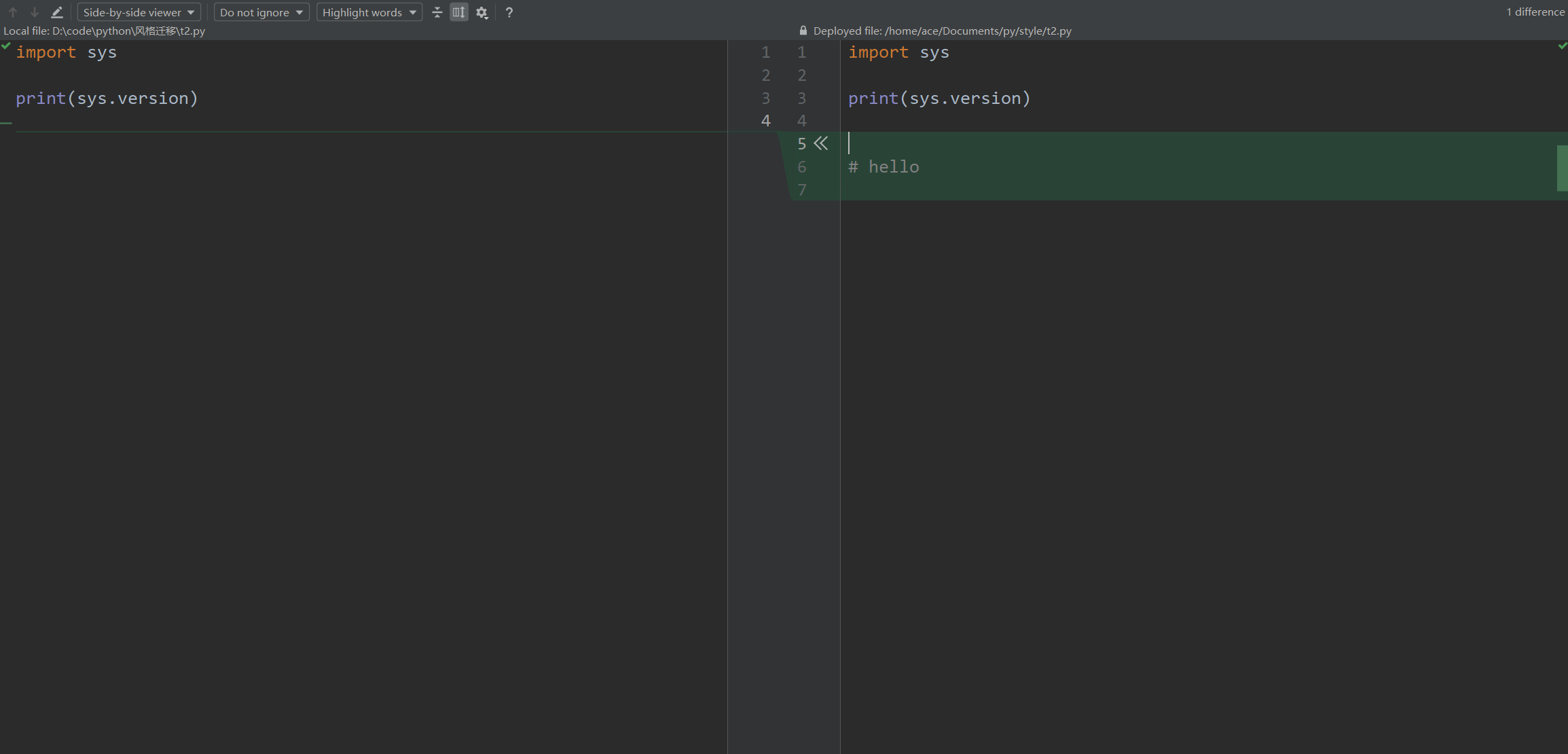 服务器修改之后, 与本地进行比较