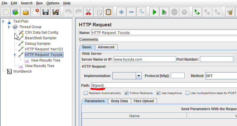 下面是使用CSV Data Set Config参数化将csv里面的数据读取,