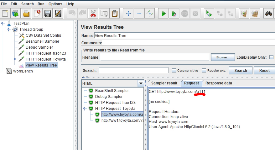 下面是查看结果树: