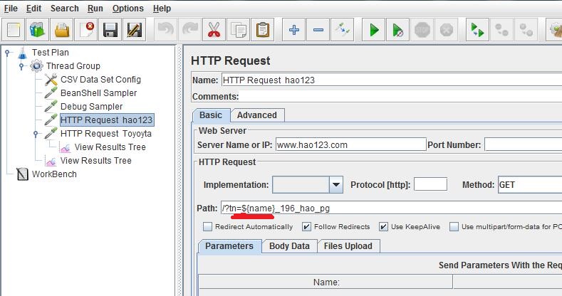 下面是添加一个Debug sampler(里面什么也不用,设置保持默认) 和两个http request