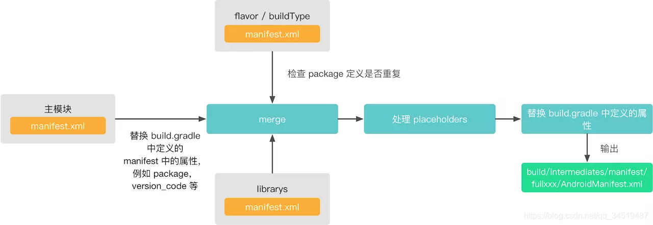 - 替换主 module 的 Manifest 中定义的某些属性,替换成 gradle 中定义的属性 例如: package, version_code, version_name, min_sdk_versin 等