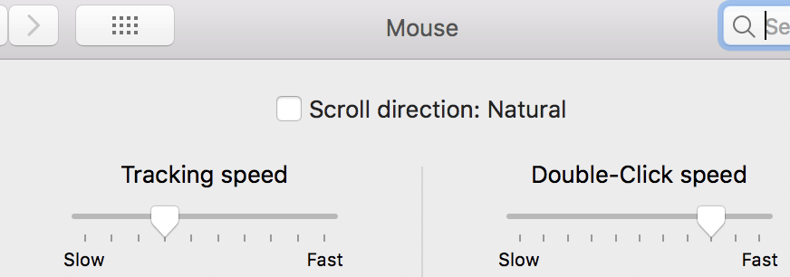 mac第一次连上鼠标时,使用才叫别扭,滚动方向完全跟windows相反。查了下滚轮滚动windows指的是滚动条,mac指的是屏幕主体。触摸板双指滑动指屏幕主体倒是正常,与windows10保持一致。毕竟其他鼠标都是滚轮,跟magic mouse滑动操作不一样,还是修改为与windows操作方式一致比较舒服: