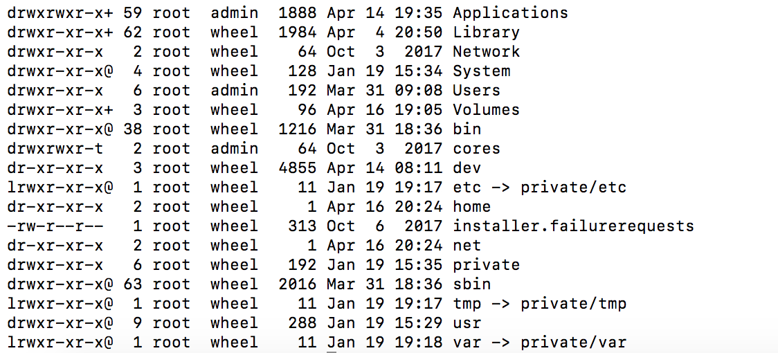 见如上2个图,Finder上查看硬盘,只能看到4个文件夹,但是通过终端ls -l /查看,却能查看到11个文件(夹),包括我们经常知道的linux下的/usr、/bin、/dev等目录。