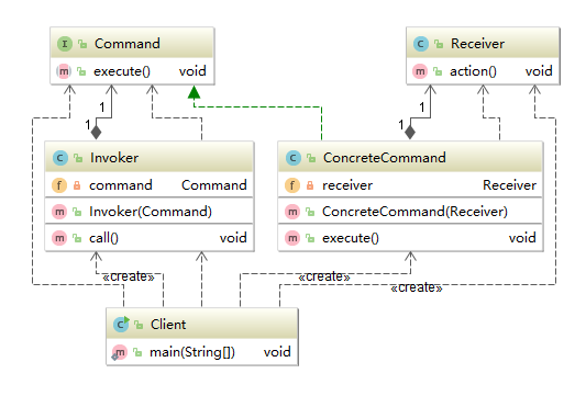 //通过请求者(Invoker)调用命令对象(Command),命令对象中调用命令具体执行者(Receiver)