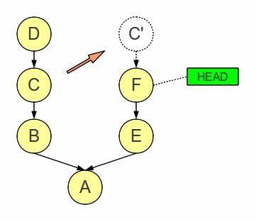当前分支head 指向F,我可以选取另一个分支上的C commit,将其更改应用到我的分支,作为C‘ commit。