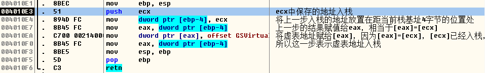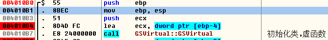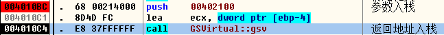 参数入栈,调用类函数,返回地址(EIP入栈):