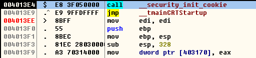 [5]函数返回前(retn前一点),把cookie取出与esp异或计算后,调用security_check_cookie函数进行检查,与.data节里的种子进行比较,如果校验通过,则返回原函数继续执行;如果校验失败,则程序终止。