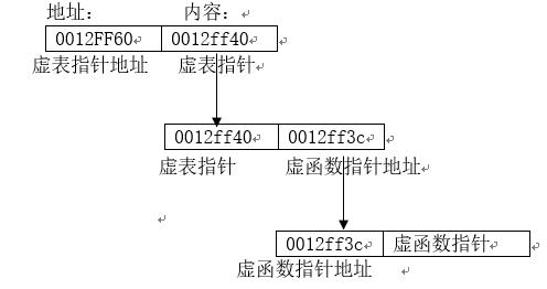 在执行(call 虚函数指针)指令之前,栈的地址是0x0012fe50。