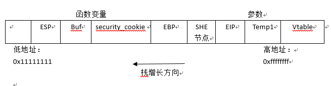 如图1.1所示,在缓冲区域cookie之间还有一些空隙,这是因为在旧版本(VS2005之前)的编译器里,局部变量是随机摆放的(指针,int,字符串位置随机)