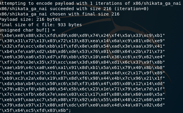 msfvenom -p windows/exec cmd=calc -b '\x00' -f c
