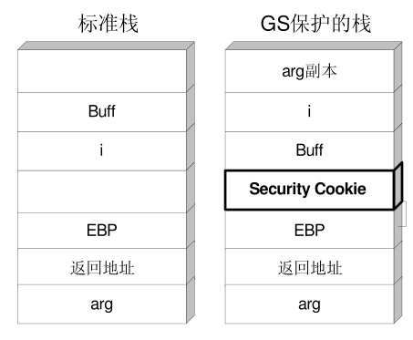 栈中的守护天使--GS,亦称作Stack Canary / Cookie,从VS2003起开始启用(也就说,GS机制是由编译器决定的,跟操作系统无关)。