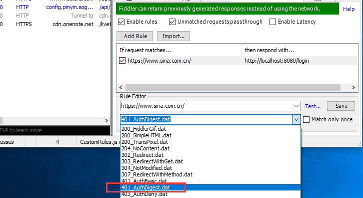 AutoResponder里面还可以模拟状态码,比如302, 401, 502这种