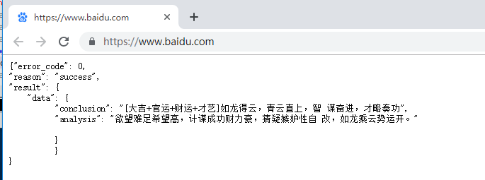 接下来在浏览器输入:https://www.baidu.com/ 就会出现刚才设置的json内容