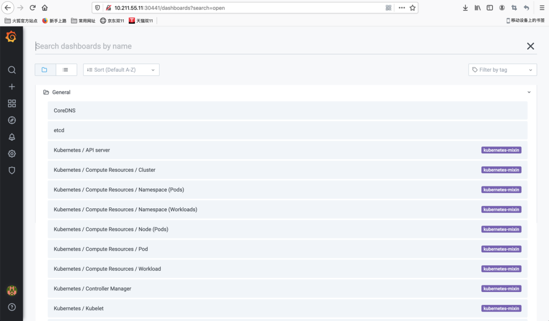 前面我们在Kubernetes中安装部署Prometheus-Operator时,实际上Grafana就已经被集成并运行了,可以通过Kubernetes的相关命令查询Grafana的实际运行Pod,并将其Web端口对外进行暴露,具体如下: