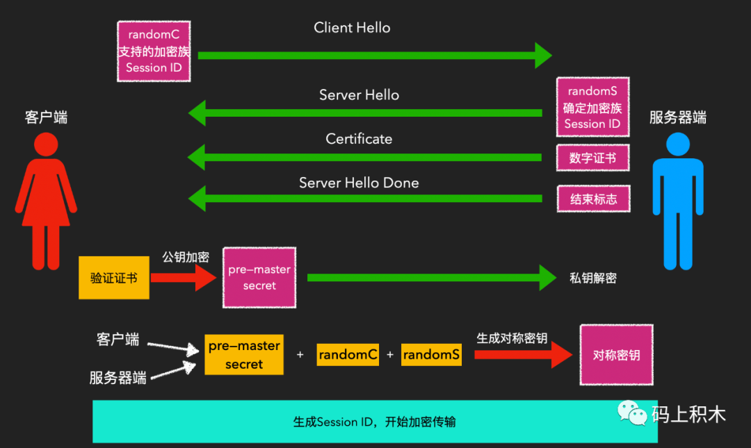 这一点刚才已经说过了,为了在断开重连后,重复连接过程,所以使用SessionID记录会话id,然后就可以重新复用定位到哪个会话了。从而减去了重复发送证书、生成密钥过程。
