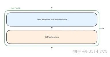 输入的每个单词通过嵌入的方式形成词向量,通过自注意进行编码,然后再送入FFN得出一个层级的编码。