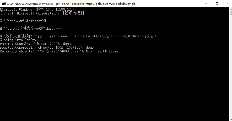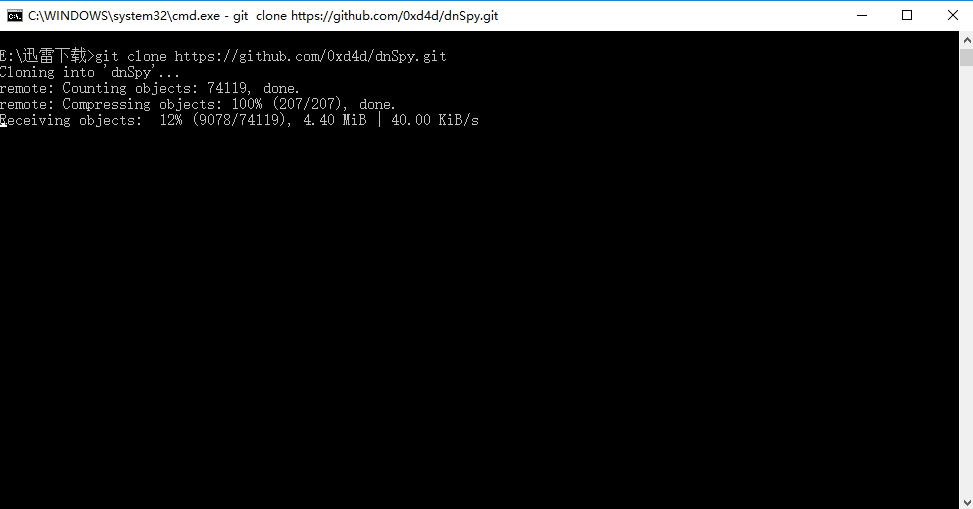打开cmd,输入git clone https://github.com/0xd4d/dnSpy.git获取项目源码