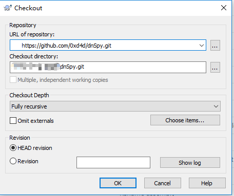 选择URL,填写项目github地址和下载保存位置,地址:https://github.com/0xd4d/dnSpy