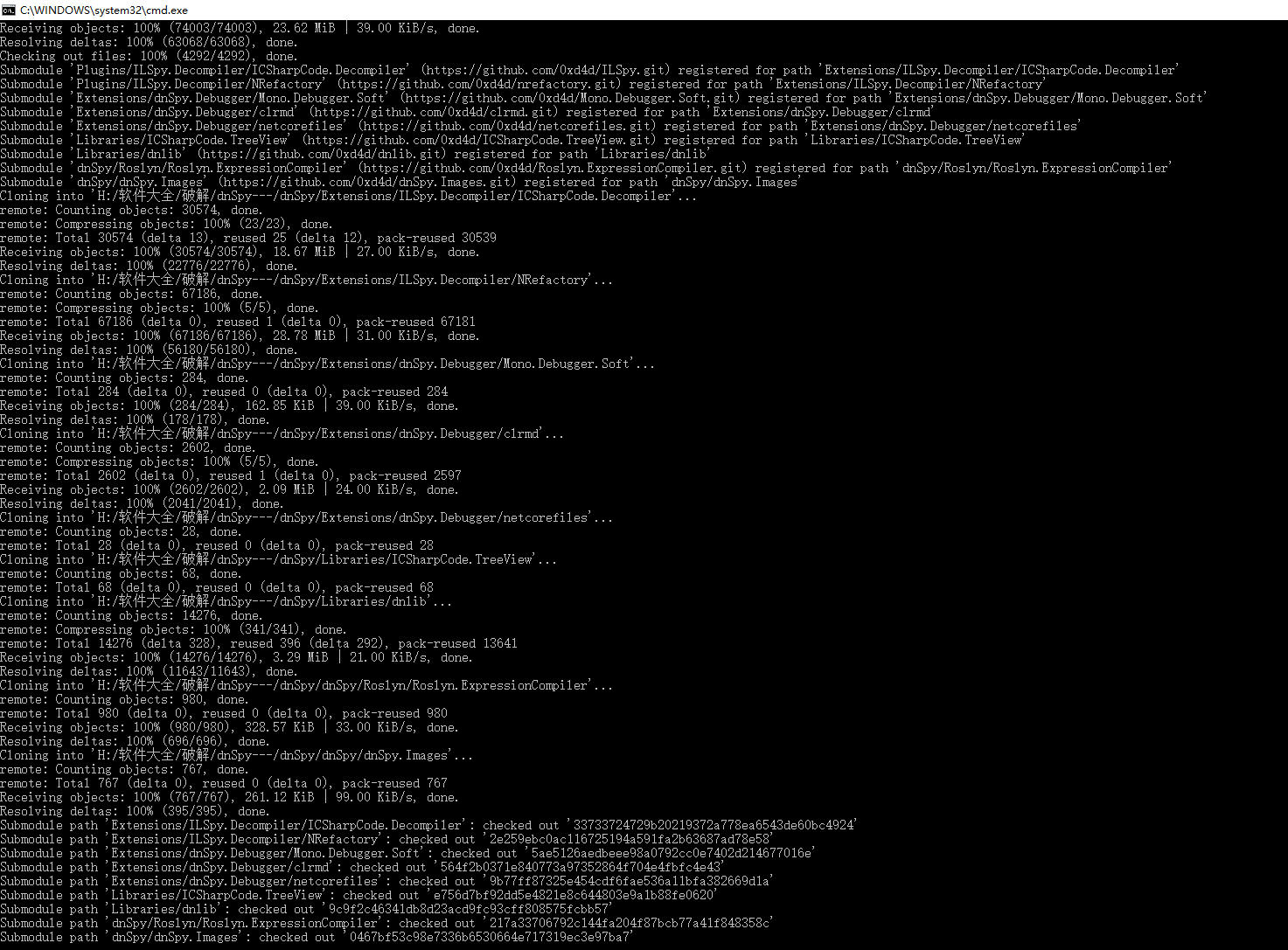 下载全部项目代码,包括引用其他项目的代码,用git clone --recursive https://github.com/0xd4d/dnSpy.git
