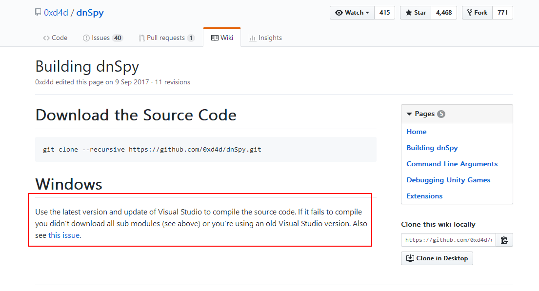Wiki,Building dnSpy有编译dnSpy的教程和问题解答