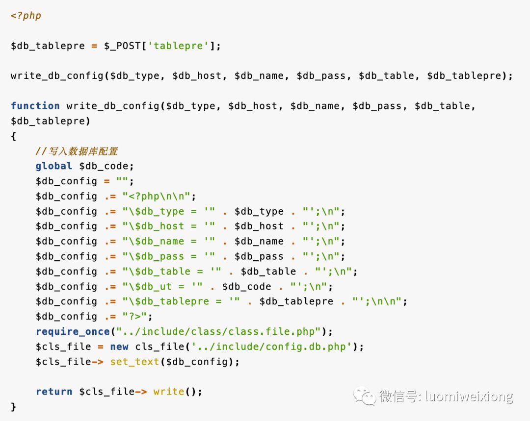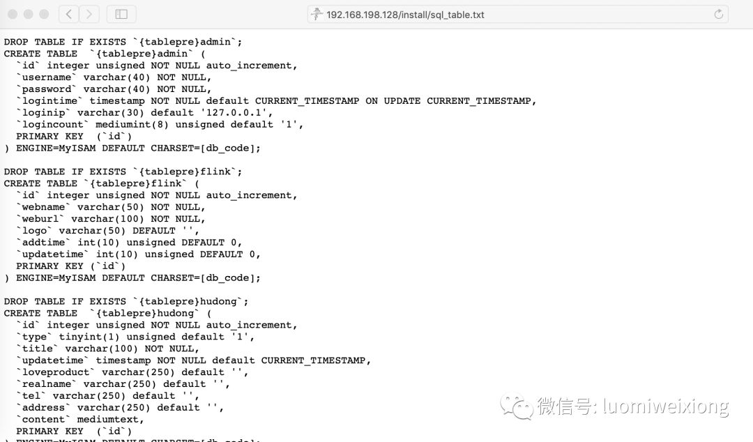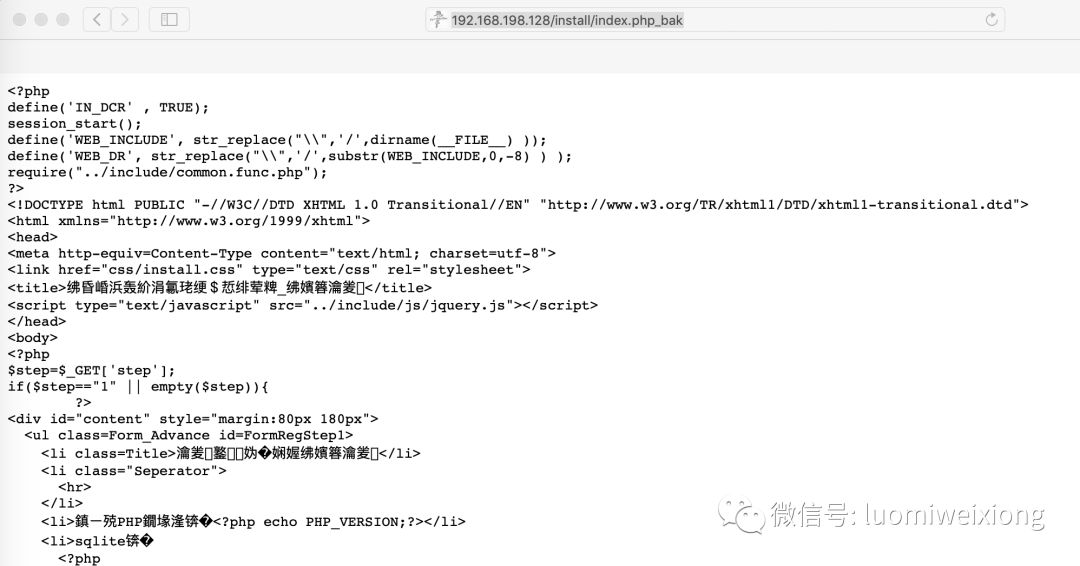 由于安装文件一般是漏洞的重灾地,于是这里直接跳到了安装文件,果然找到了漏洞点。